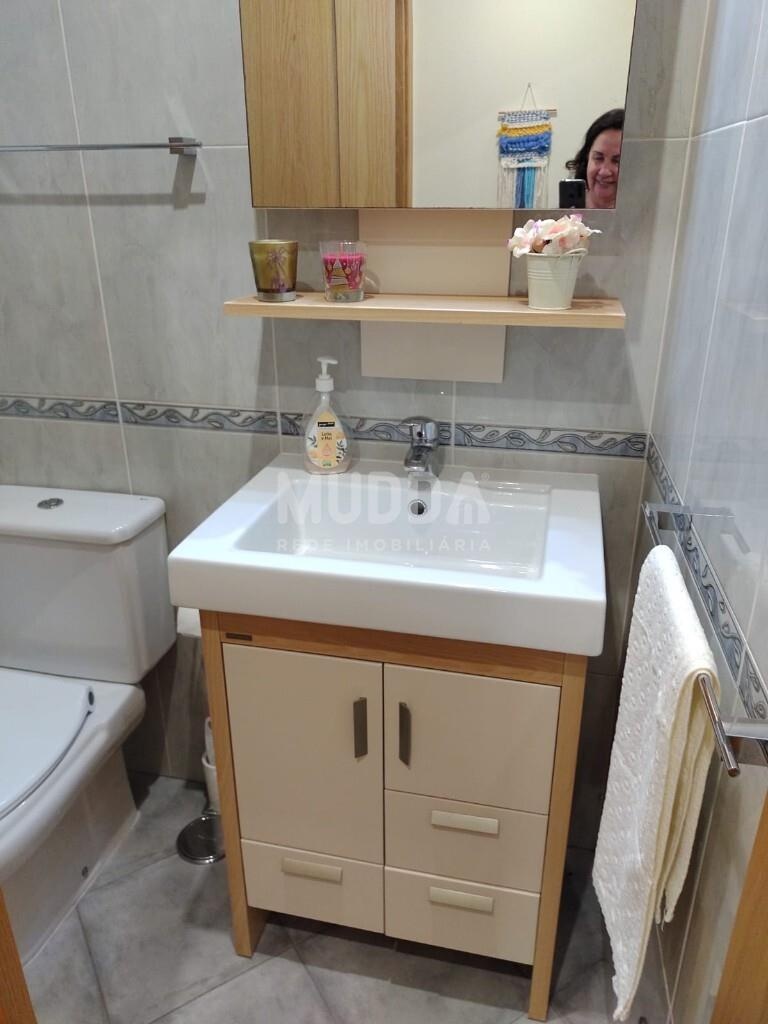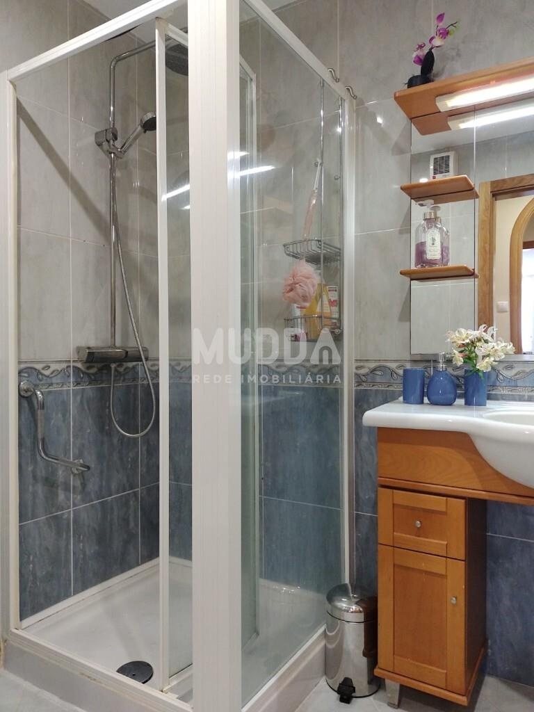 Duas casas de banho: uma de serviço e outra completa, equipada com base de duche.