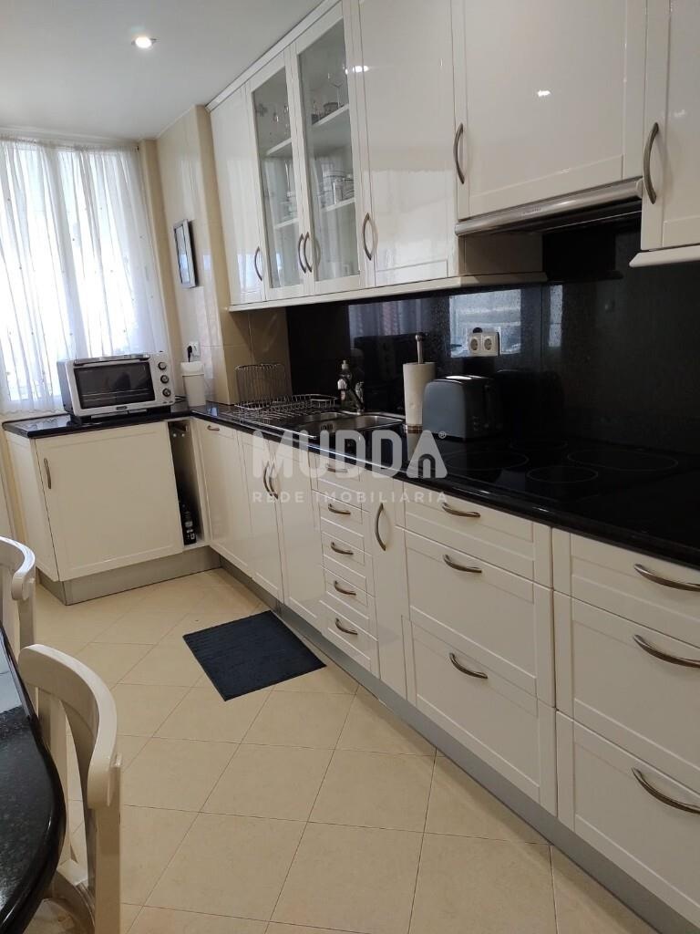 Cozinha totalmente equipada com eletrodomésticos modernos, incluindo frigorífico, forno, placa, exaustor, micro-ondas, máquina de lavar roupa, máquina de lavar loiça e cilindro para aquecimento de águas – tudo o que precisa para o seu dia a dia.