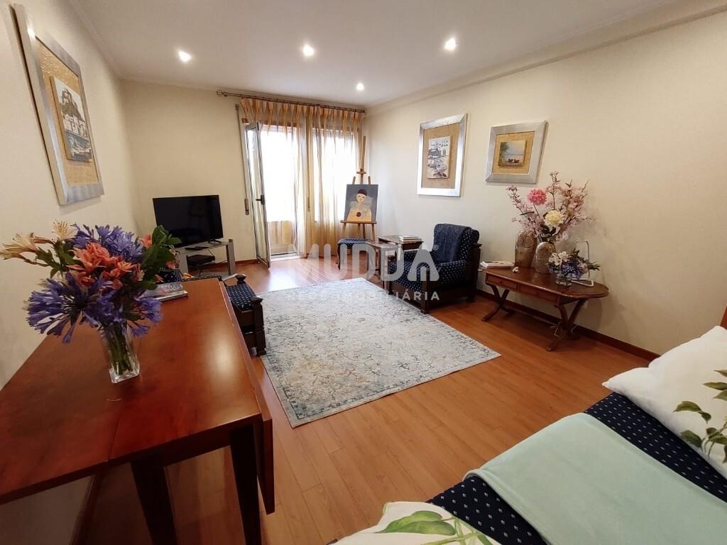 Sala de estar ampla e luminosa com uma vista privilegiada para a Praça da Fruta, perfeita para relaxar ou entreter amigos.