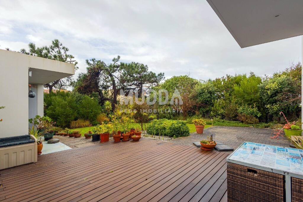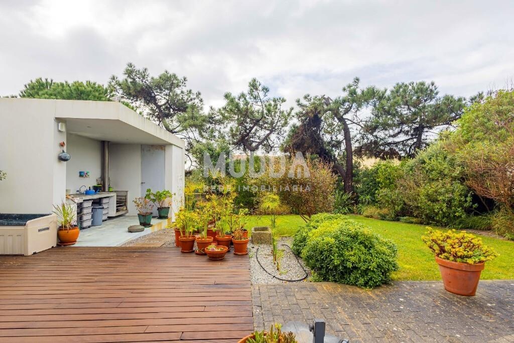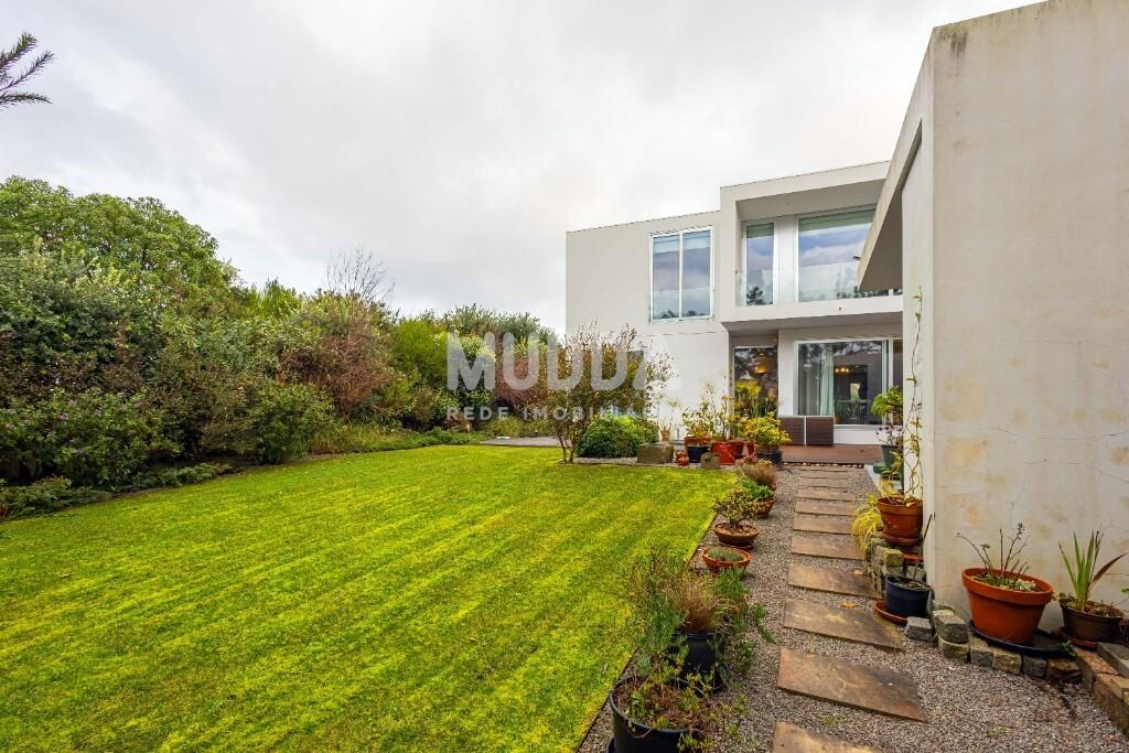 Nas traseiras destaca-se um jardim cuidadosamente concebido por arquiteto paisagista, equipado com churrasqueira e furo de água, garantindo uma manutenção sustentável do espaço exterior.
