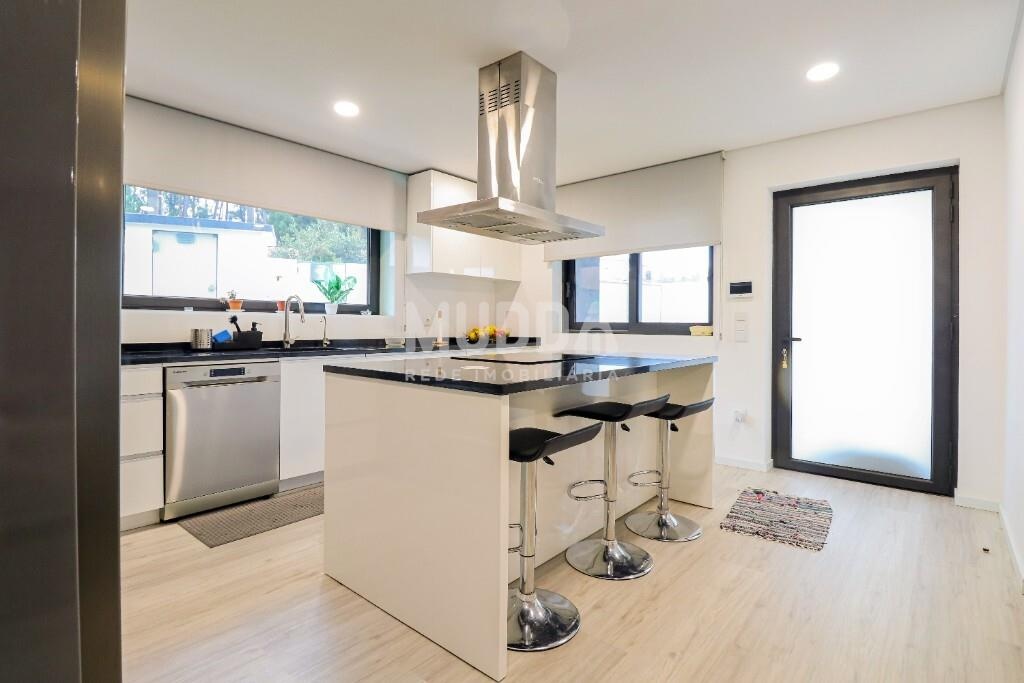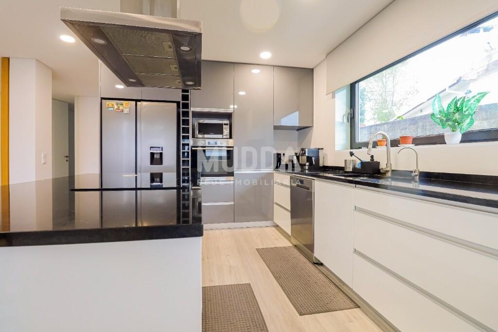 Cozinha totalmente equipada, com ilha e hotte, pensada para momentos de partilha.